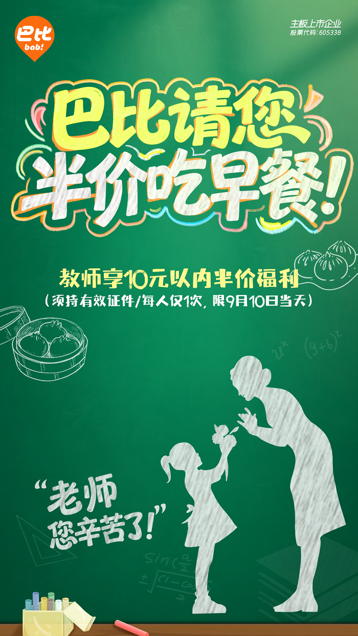 2025年9月10日是我国第41个教师节,为积极响应沉教的社会风尚,国平易近早餐品牌——巴比食物,于教师节当天推出“全国教师凭无效证件可享套餐半价”福利勾当,以实实正在正在的优惠,向泛博教育工做者表达取感激。