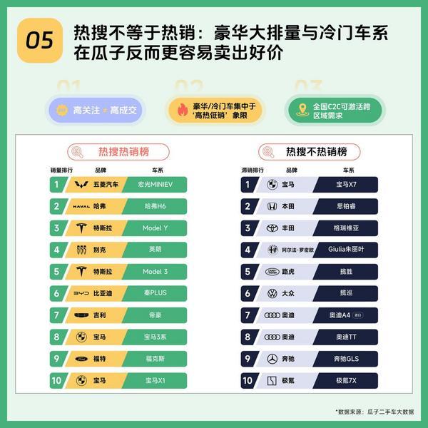 做为全国领先的线上二手车电商平台,瓜子曾经成为大量用户查询行情、比价决策的主要入口。平台上,环绕分歧车系的搜刮取筛选行为累计达到数亿次。将这些搜刮热度取现实成交环境进行对比后,能够发觉较着的布局差别。